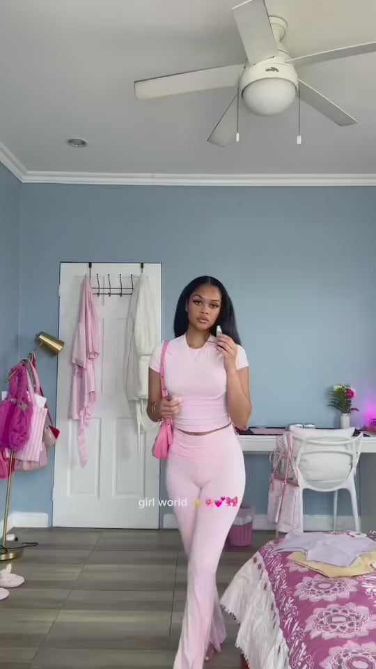 Conjunto de dos piezas de top de manga corta y pantalón acampanado
